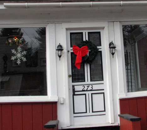 Probably the most colorful house in Chester. They have several artificial Christmas trees on the porch -- also in many varying hues.